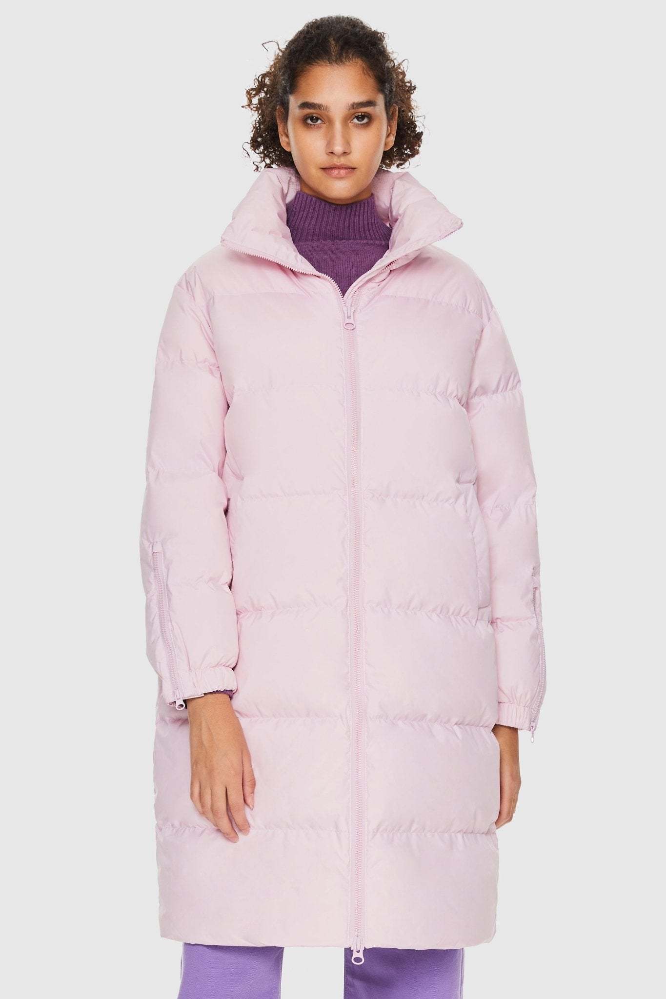 The elastic cuffs with side slits, and two-way zipper provide a comfortable and flexible fit for the long winter jacket. Easily adjust the sleeves and enjoy easy movement with the split zipper design,